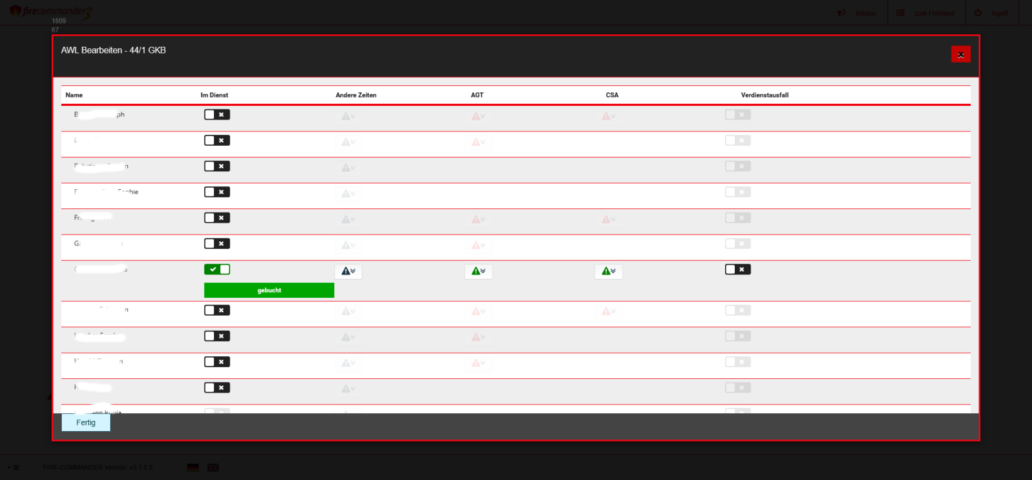 • Atemschutz-/CSA-Zeiten: Dokumentation der Einsatzzeiten im Atemschutz sowie unter Chemikalienschutzanzügen
