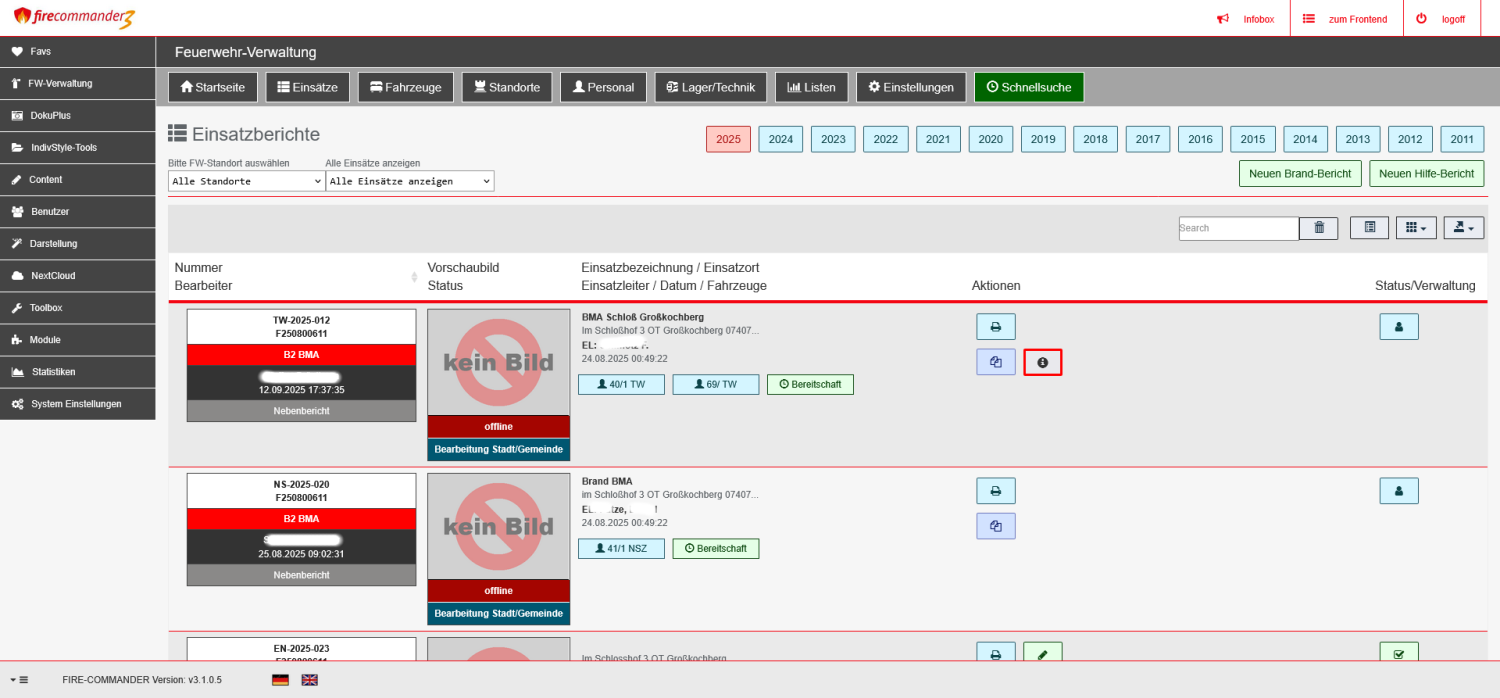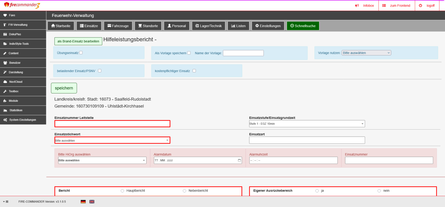 Im Bereich „Einsatzberichte“ stehen verschiedene Funktionen zur Dokumentation und Verwaltung von Einsätzen zur Verfügung.