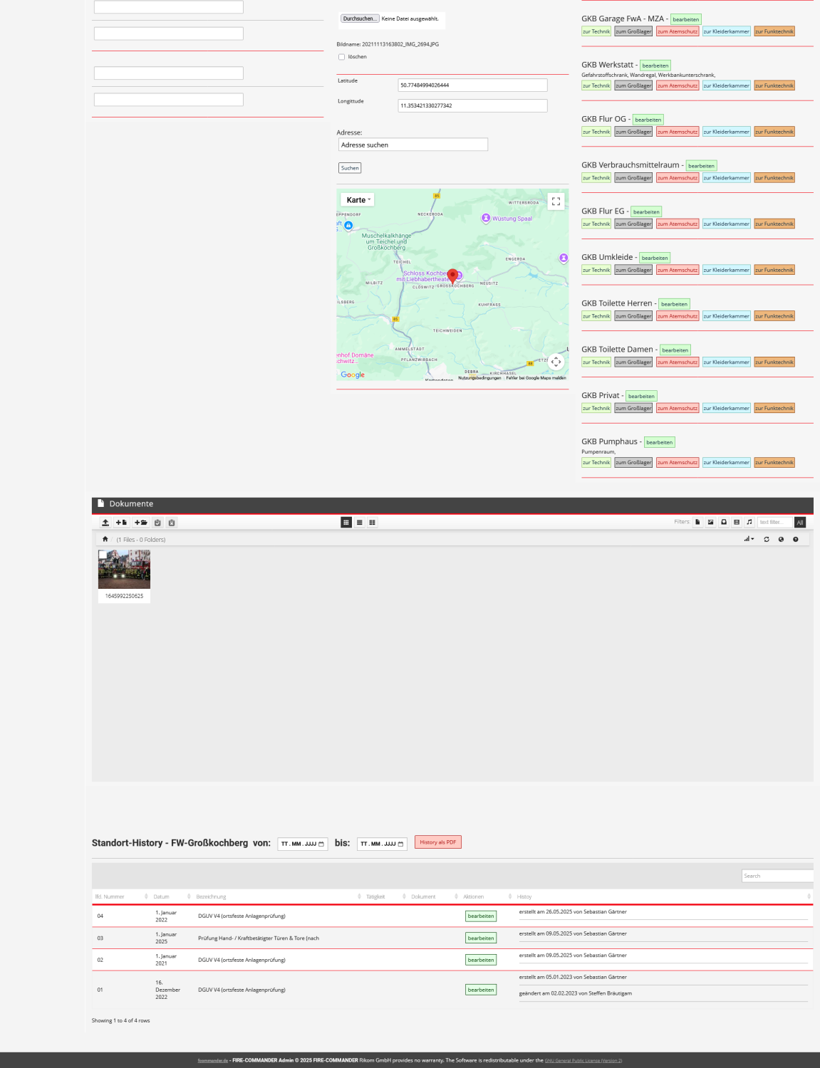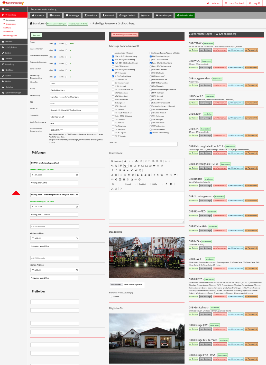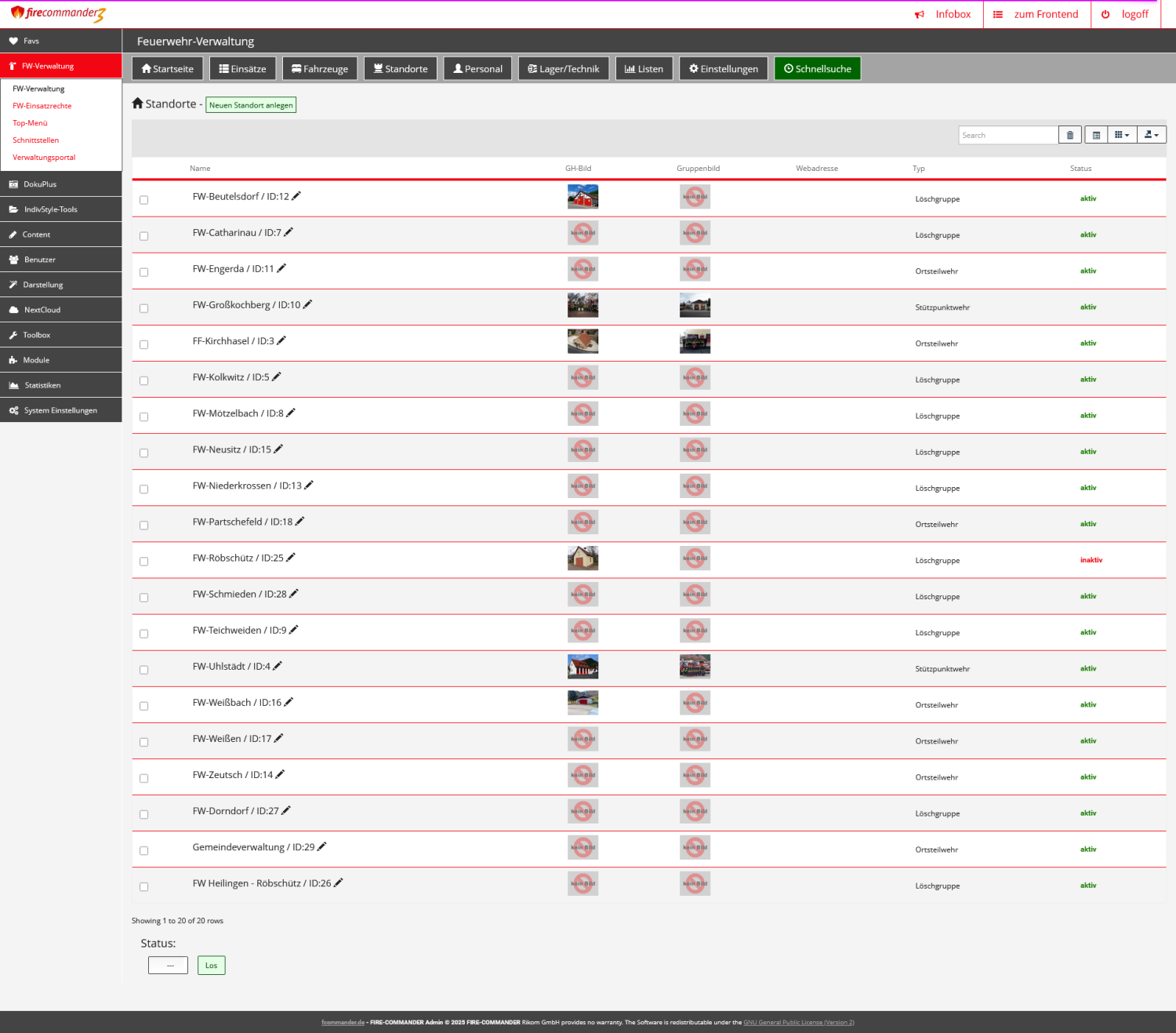Im Bereich Standorte können alle relevanten Daten zu Feuerwehrstandorten gepflegt und verwaltet werden.