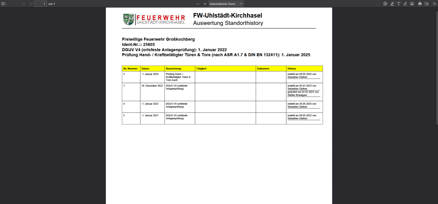 Es stehen vier Prüfterminfelder zur Verfügung (z. B. DGUV).