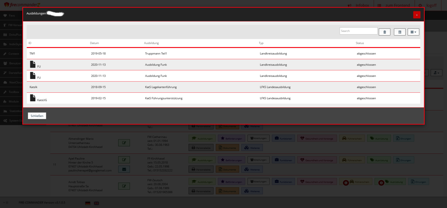 Alle absolvierten und anstehenden Ausbildungen der Feuerwehrmitglieder können erfasst, verwaltet und dokumentiert werden. So bleibt der Ausbildungsstand jederzeit im Blick.