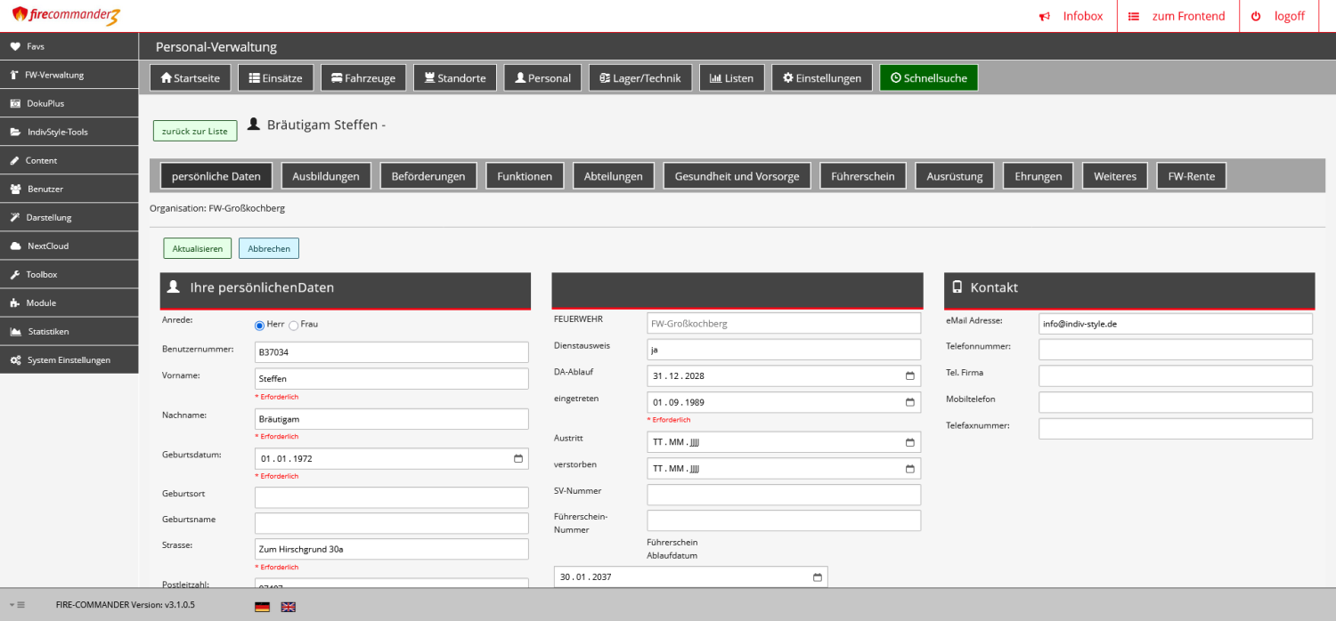 Die Personalverwaltung von Fire-Commander erleichtert die Verwaltung der Feuerwehrmitglieder, indem sie eine zentrale Erfassung aller relevanten Informationen ermöglicht.